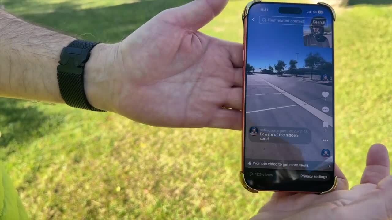 "Safe Scooter Guy here—watch out for hidden curbs," he warns in one of his videos.