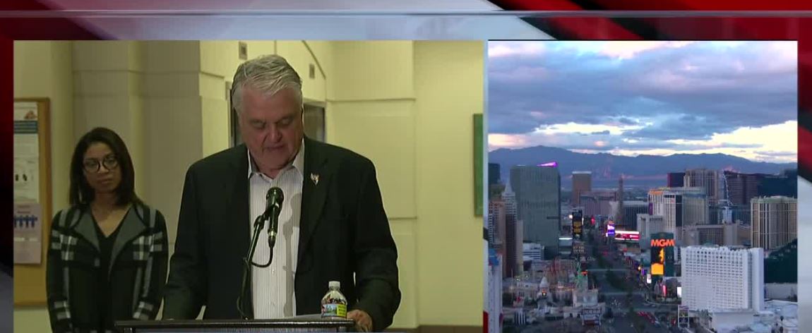 Sisolak started the press conference at the Grant Sawyer State Office Building by talking about medical professionals and others who are working to save the lives of Nevadans. He repeatedly said that now is not the time for people to be gathering for social events and even discouraged play dates and sleepovers.