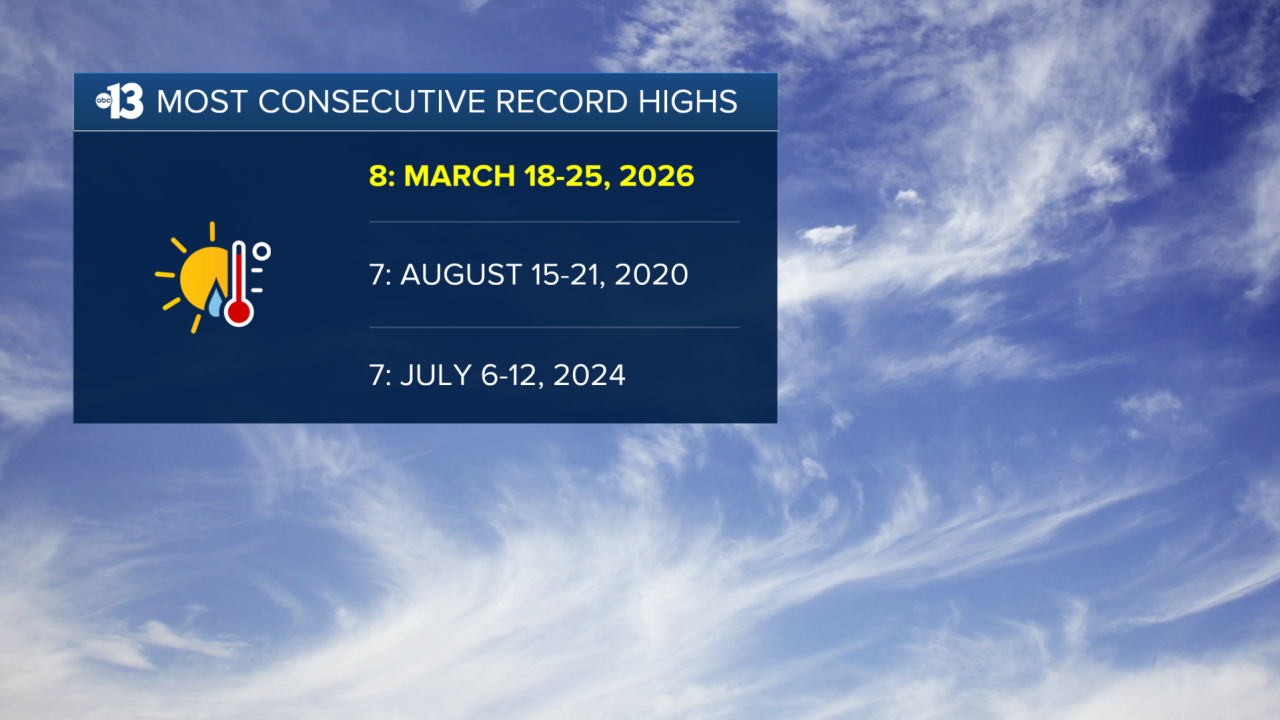 Believe it or not, our current streak of eight straight days setting a new record is now the longest streak of consecutive new record highs we've ever seen in Las Vegas, which might be surprising, given our scorching Southern Nevada Summers.