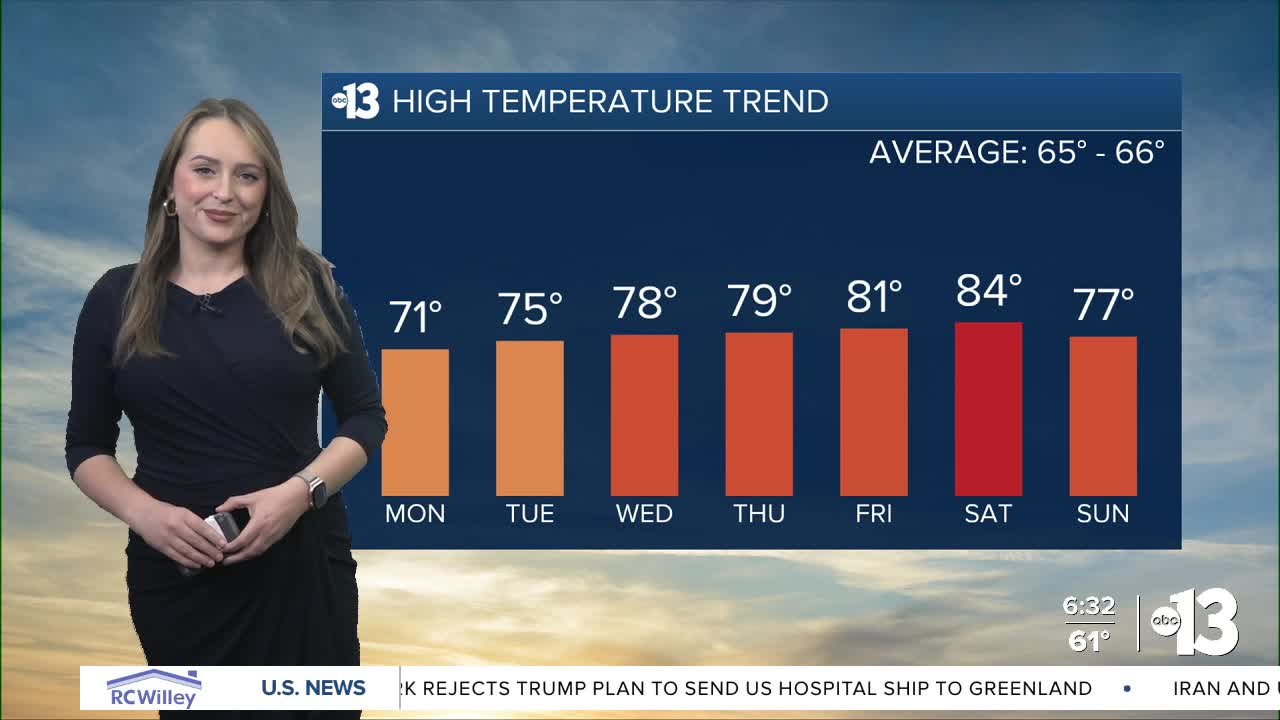 MONDAY: Mostly sunny. Light & variable wind. High: 71°