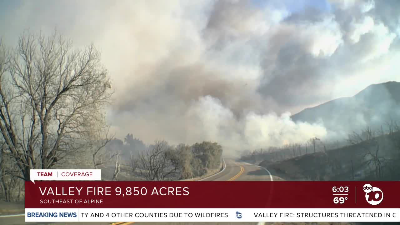 SAN DIEGO, Calif. (KGTV) — The Valley Fire continued to burn overnight in East County as evacuations remain in place.