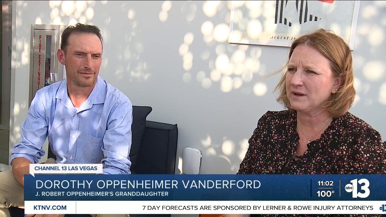 LAS VEGAS (KTNV) — On Thursday, J. Robert Oppenheimer's grandchildren, Dorothy Oppenheimer Vanderford and Charles Oppenheimer, gathered for an exclusive event at the Beverly Theatre to discuss the recently released Oppenheimer movie.