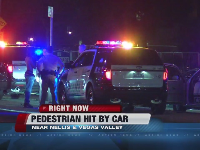 A pedestrian was seriously injured after being hit by a car Sunday evening at Nellis Boulevard and Vegas Valley Drive.
