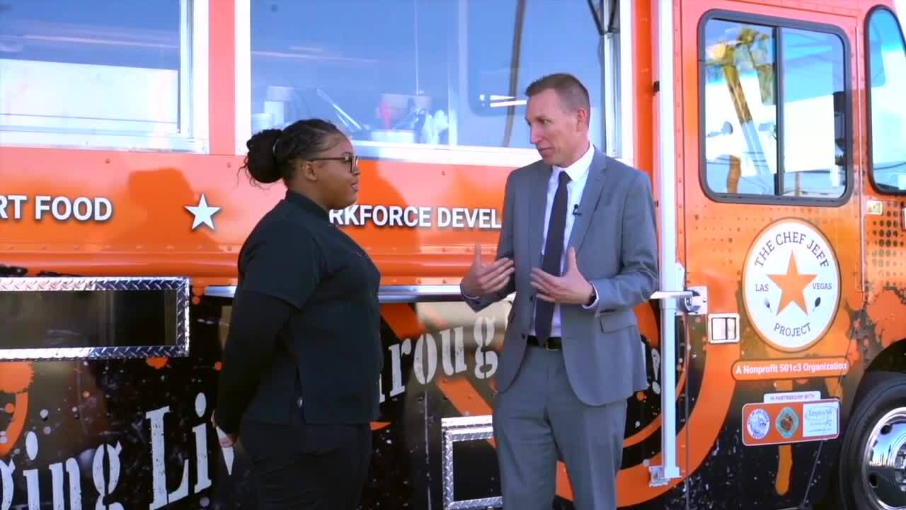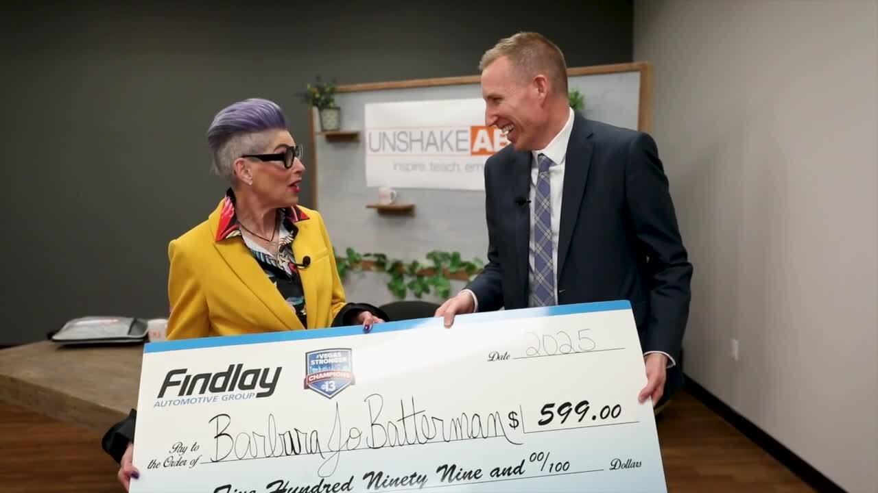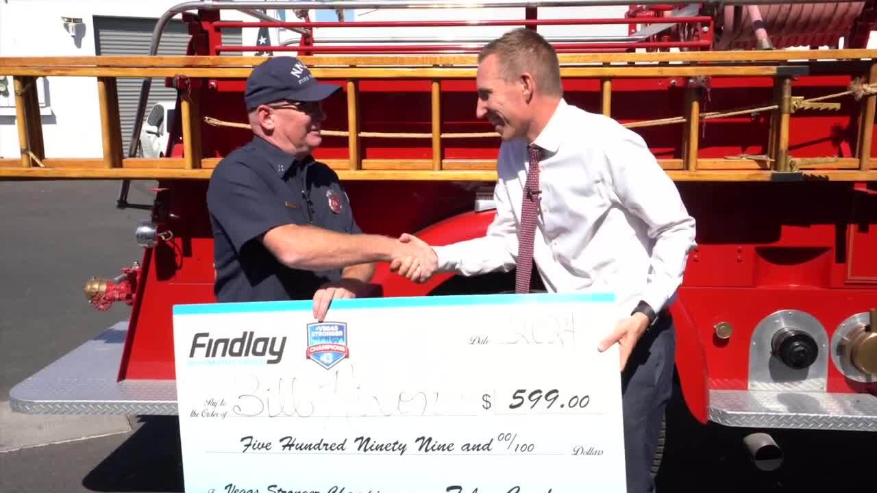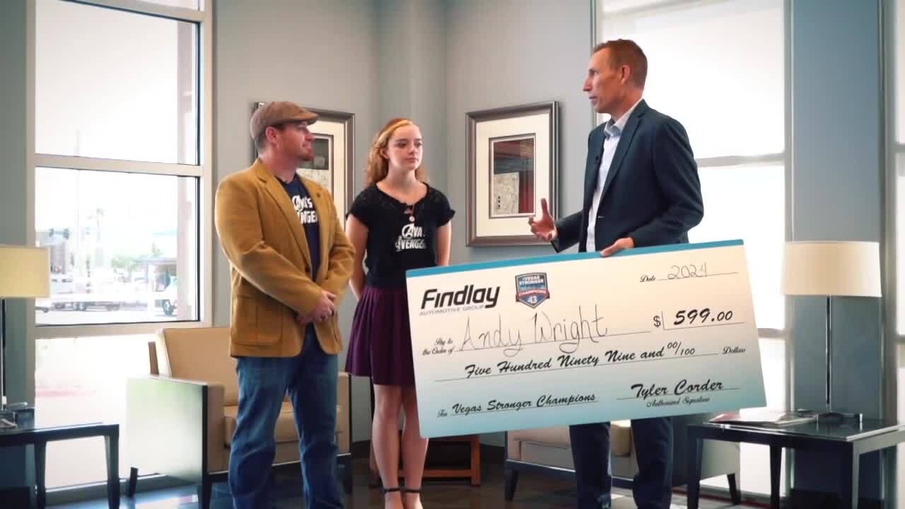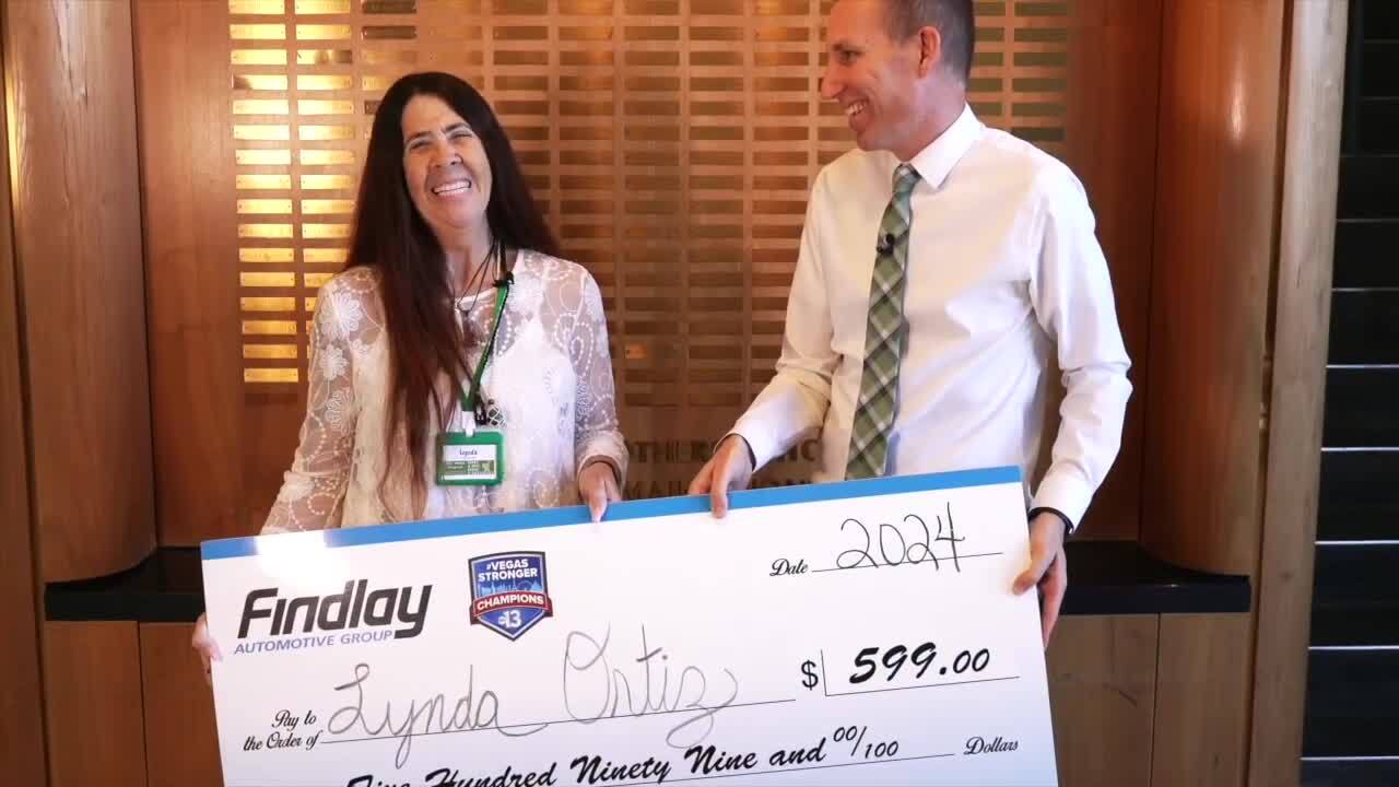 "We've heard a lot about you and what you've been doing here with Baby's Bounty. And we love Baby's Bounty, we've been aware of them for a long time, and supported them in the past. And we understand that you've just graduated recently with a nursing degree, so call it a graduation present. We are highlighting you as our Vegas Stronger Champion, and we wanted to give you a small token of our appreciation for what you've done and what you continue to do," Giles told Rodriguez while surprising her with a check for $599.