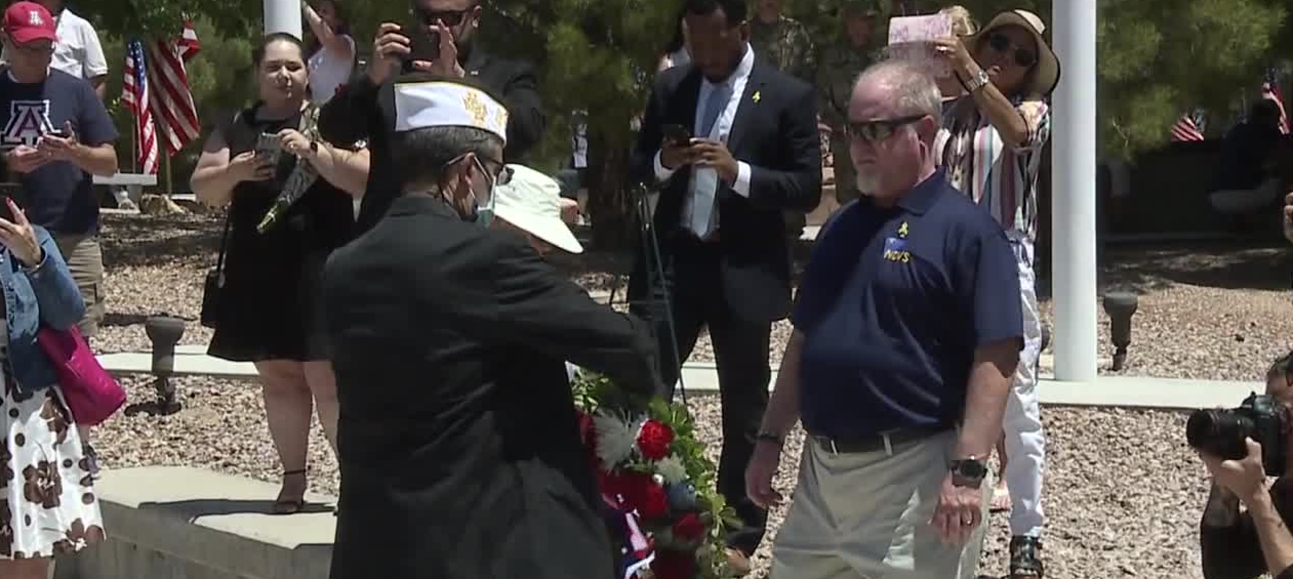 BOULDER CITY (KTNV) — Honoring those who fell in battle. A beautiful ceremony at the Southern Nevada Veterans Memorial Cemetery in Boulder City on Monday afternoon paid tribute to those who have died defending our country.