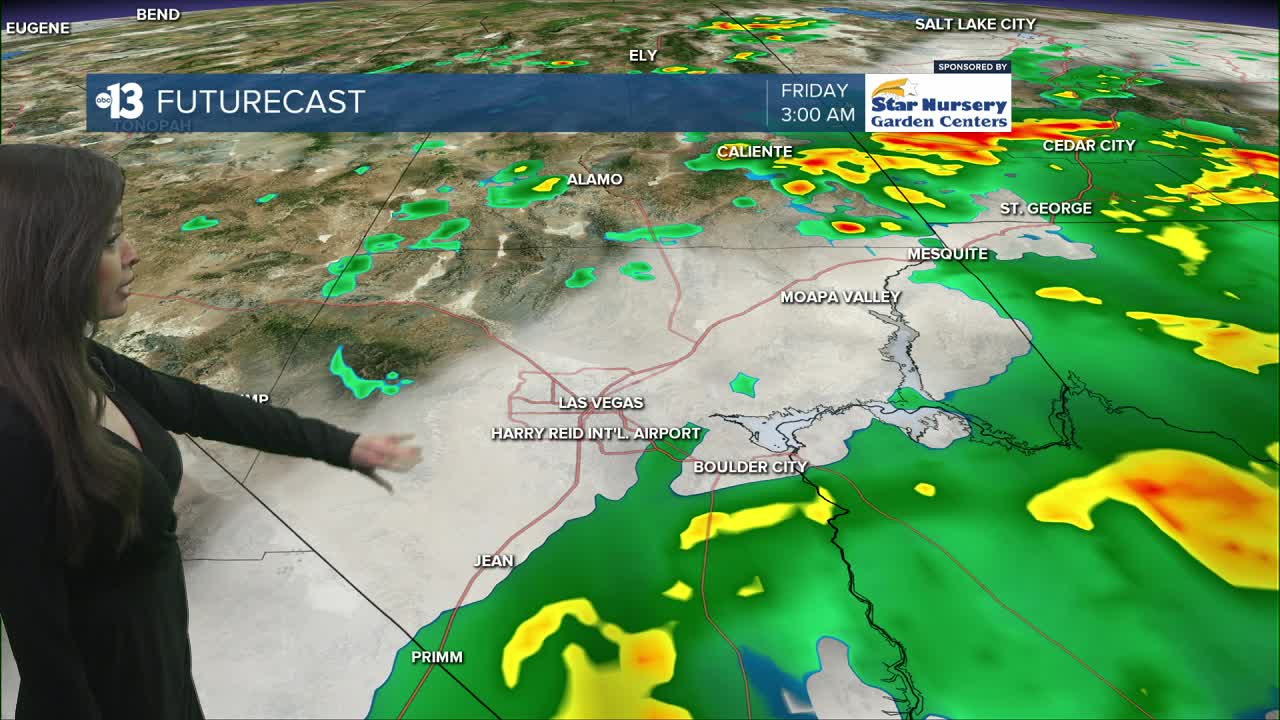 Clear and dry tonight with lows in upper 60s. Rain chances return starting on Thursday as leftover moisture from the remnants of Hurricane Priscilla moves into Southern Nevada. Scattered showers and storms by late morning on Thursday and continue through the rest of day. Scattered showers and storms again on Friday, then tapering off by Saturday. Highs in the 80s through Saturday. Dry and cooler by Sunday with highs in the 70s. Overnight lows will drop into the 50s and 60s.