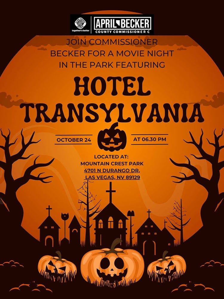 Come out to Mountain Crest Park on Friday, Oct. 24 from 6:30-8:30 p.m. for a free screening of "Hotel Transylvania."