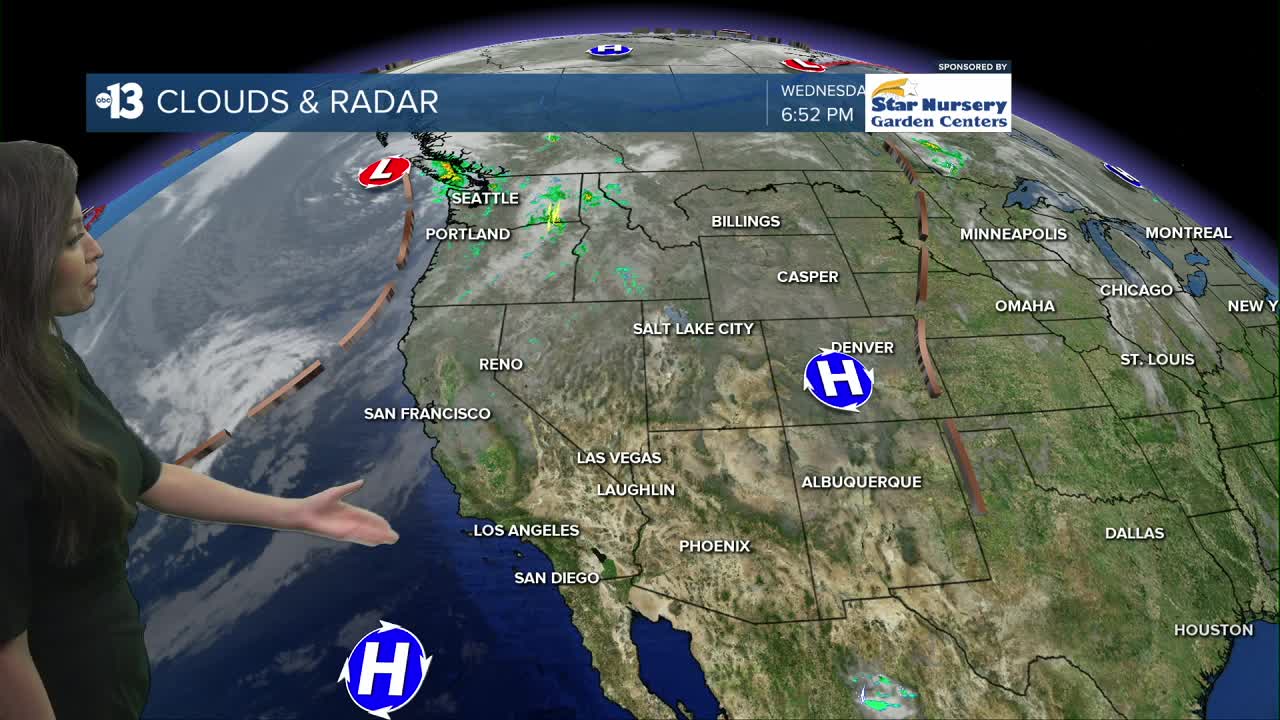 Clear skies overnight with lows in the 60s. Dry and sunny weather remains with us this week. A pleasant day on Thursday with highs in the low 90s. An area of low pressure will move into the region on Friday, bringing very strong winds and cooler air. Expect highs in the low 80s this weekend with less wind. Overnight lows will drop into low to mid 60s.