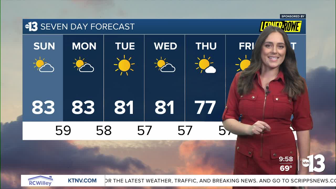 A slight dip in temps will take us back to the upper 70s by Thursday thanks to a trough moving our direction from the Pacific Southwest. Along with this cool down, we'll see increasing wind speeds and cloud cover. The Eastern Sierra may see some rain, snow. However, precipitation chances remain minimal for Southern Nevada with this system.