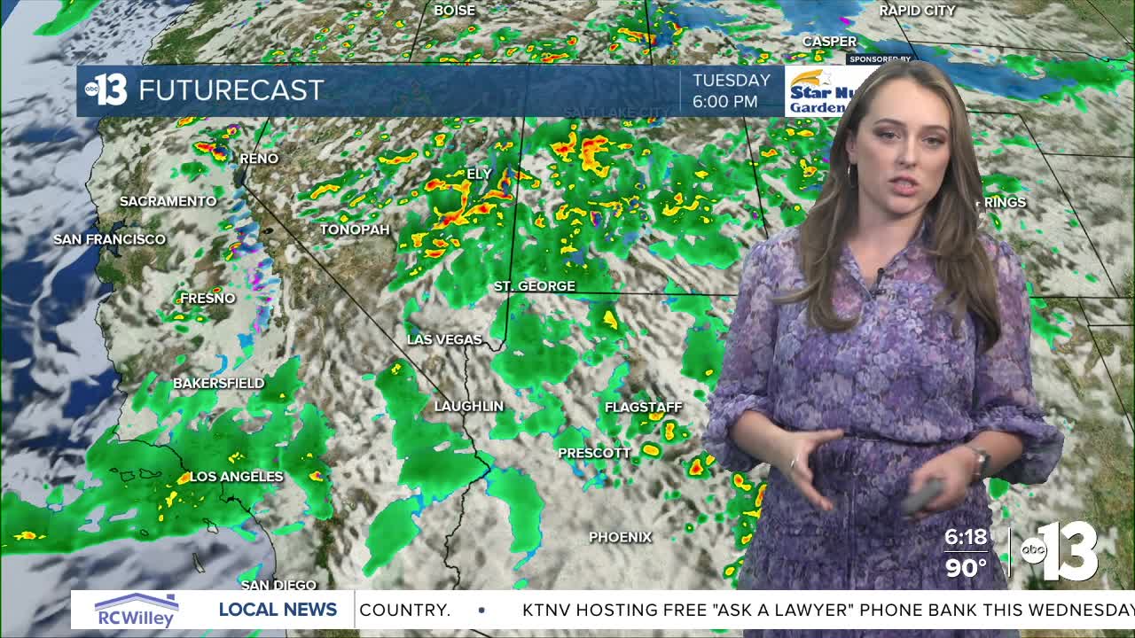 Tomorrow, we are expecting a high temperature of 90 degrees which ties the previous record for March 30th of 90 set in 2015. If we do hit 90, that will be the 13th day of record-breaking heat. However, that will be the turning point. We'll see dramatically cooler temperatures due to low pressure sweeping through the region Tuesday. We'll see some scattered showers and t-storms throughout Southern California and Central Nevada. Right now, Las Vegas has a 20% chance of rain Tuesday evening through Wednesday mid-day. Highs get back to the low 80s through Thursday, then the 70s are on tap for Friday. Those are much more seasonable temperatures for early April.