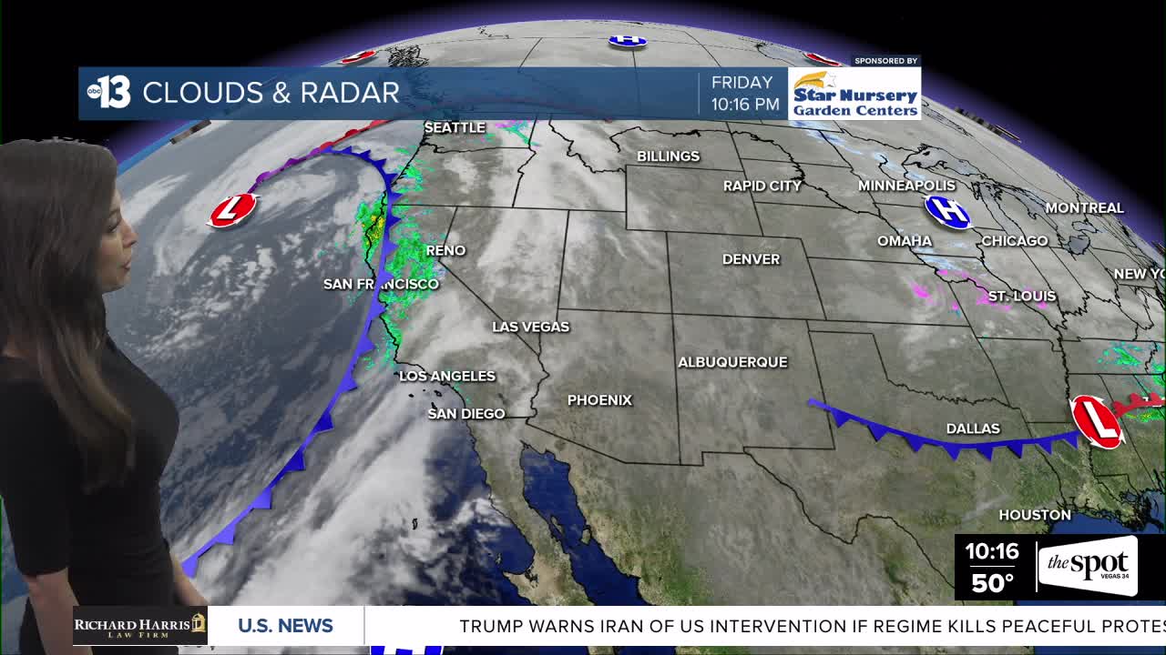 Mostly cloudy tonight with lows in the 40s. Mostly cloudy skies on Saturday with a slight chance of showers by the afternoon hours as the next system moves through the region. Breezier with a chance of showers on Sunday. Dry weather early next week, then a chance of showers by midweek. Rain amounts look light this week. Highs in the 50s to low 60s this week. Overnight lows in the 40s and 50s.