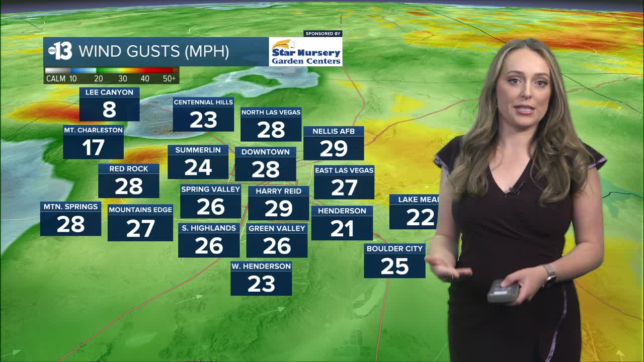 A Wind Advisory has been issued for Clark County and Southern Nye County through 11PM Sunday. It's expected to be windy with wind speeds up to 30mph and gusts up to 50mph. Plan for choppy waves out on Lake Mead and the Colorado River. Temperatures will drop tomorrow into the low 70s in the Las Vegas Valley which is below average for this time of year. In the afternoon hours, we could see some spotty showers roll through the metro area. In the higher elevations, we could see some rain/snow mix with any precipitation.