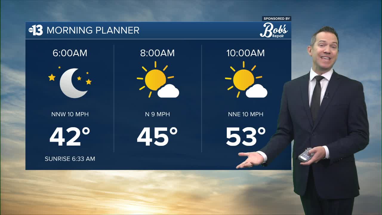 MORNING: Wake-up temperatures in the 40s feel like the 30s due to north winds at 10-20 mph.