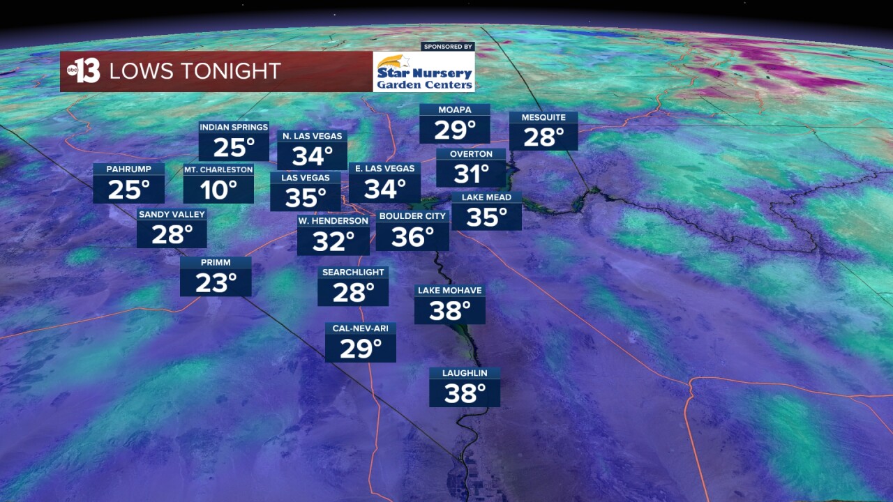 TONIGHT: One of the coldest nights this winter, with lows plummeting to the mid 30s in Las Vegas and the upper 20s in some high elevation neighborhoods on the west side of the valley.