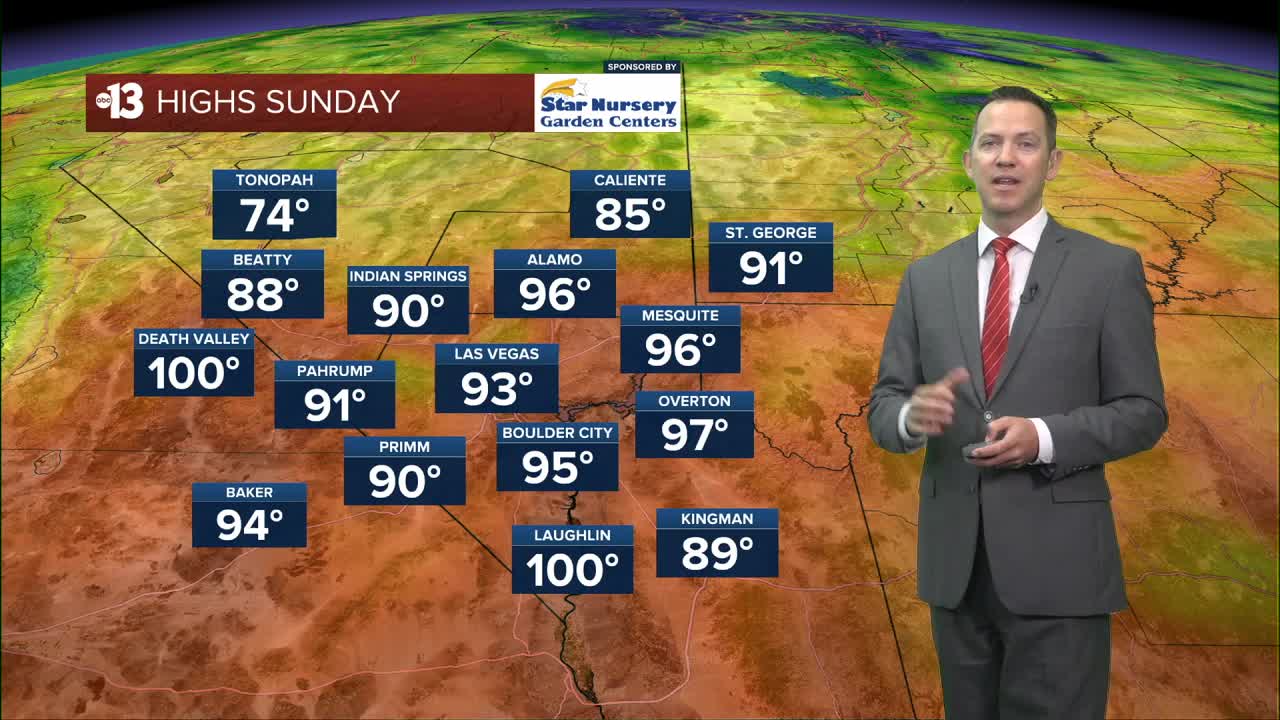 AFTERNOON: Sunshine and highs in the low 90s for the first time in 2026; that's about one month ahead of schedule. A high of 94° in Las Vegas would set a new all-time record for March.