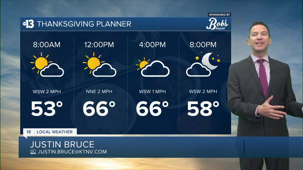 THANKSGIVING MORNING: Partly cloudy with wake-up temperatures in the upper 40s.