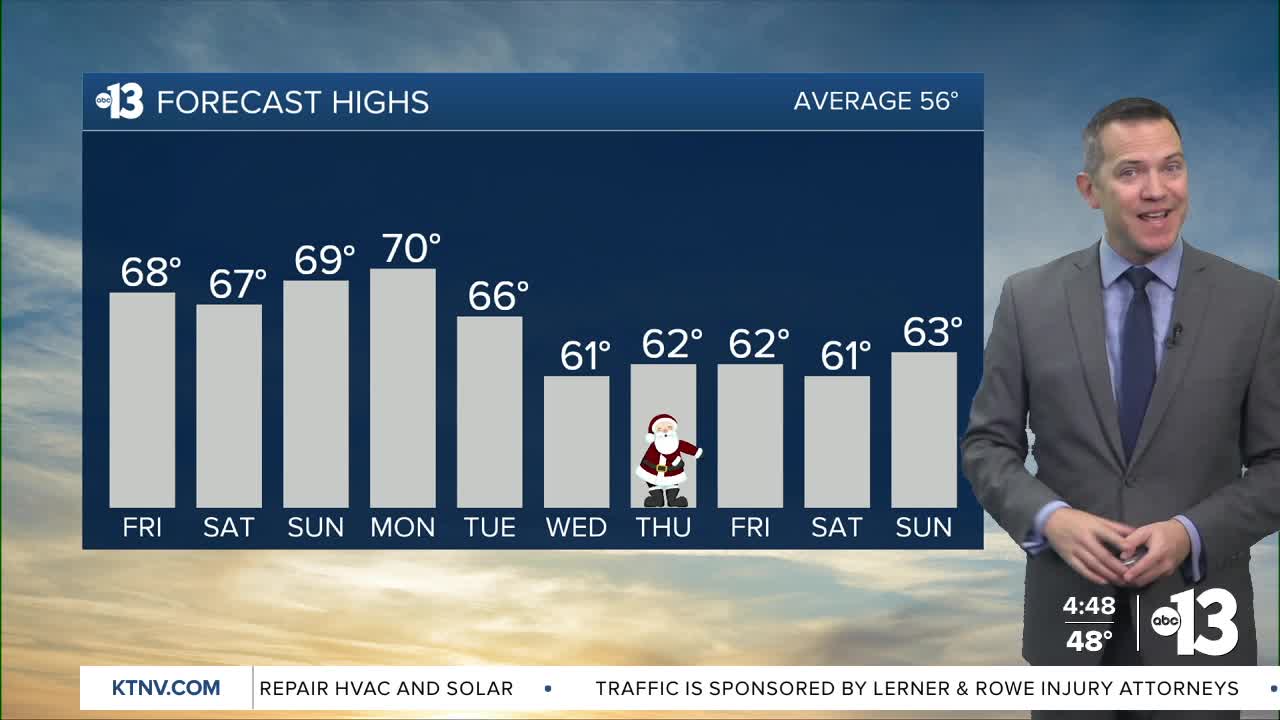 AFTERNOON: Partly cloudy and calm in Las Vegas. The forecast high of 68° should tie the record, set last year.