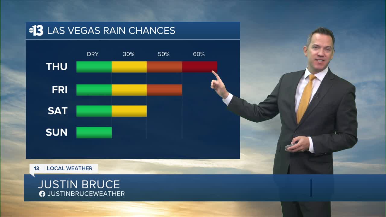 Rain totals in Las Vegas range from 0.25" to 0.50" over the next three days. While brief, minor flooding issues are possible underneath some of the heavier downpours, widespread problems are not expected in the valley.