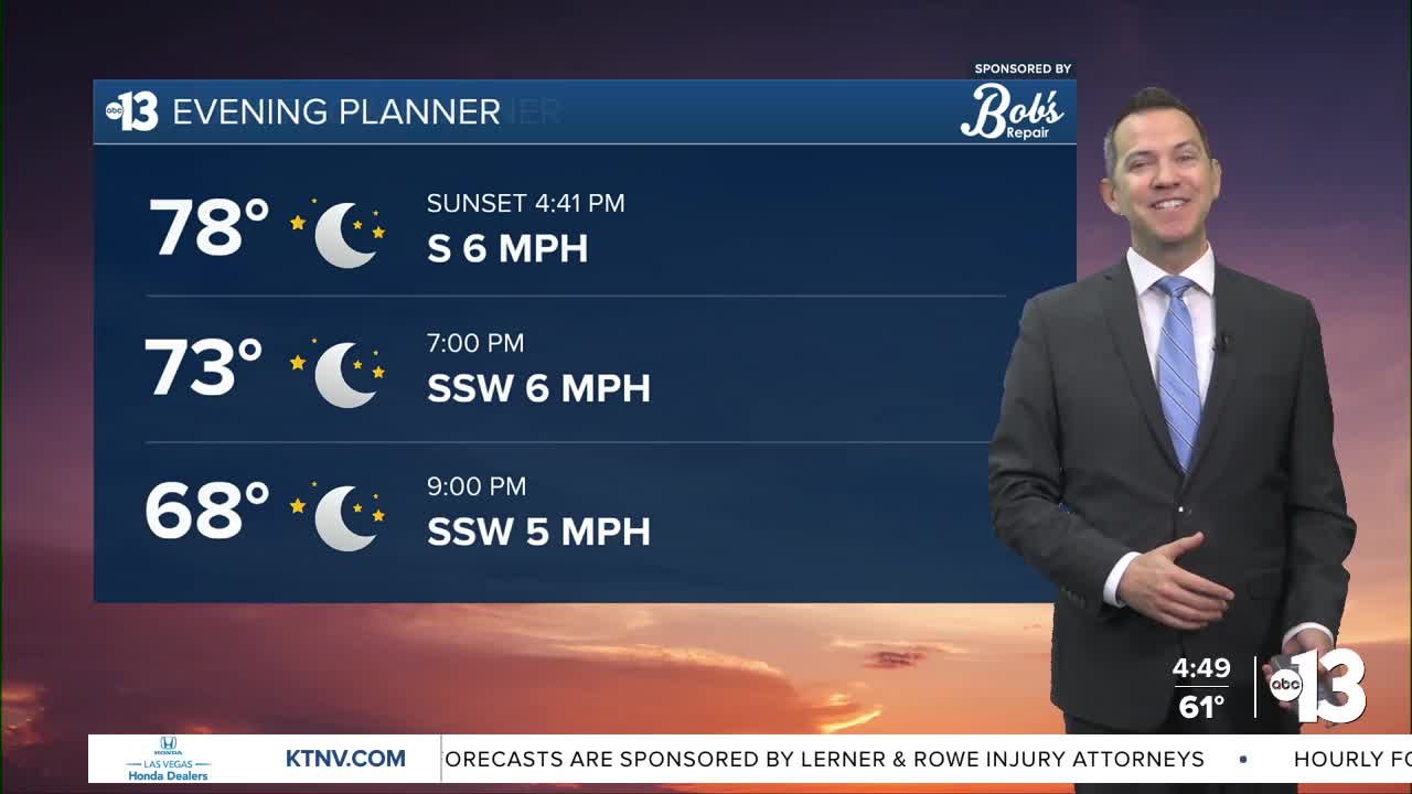 Nighttime lows remain cool, in the mid-and-upper 50s around Las Vegas.