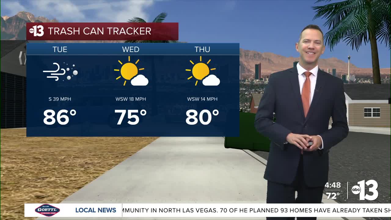 Wednesday is a bit cooler, in the mid 70s, as winds linger at 15-25 mph from the west under a mostly sunny sky.