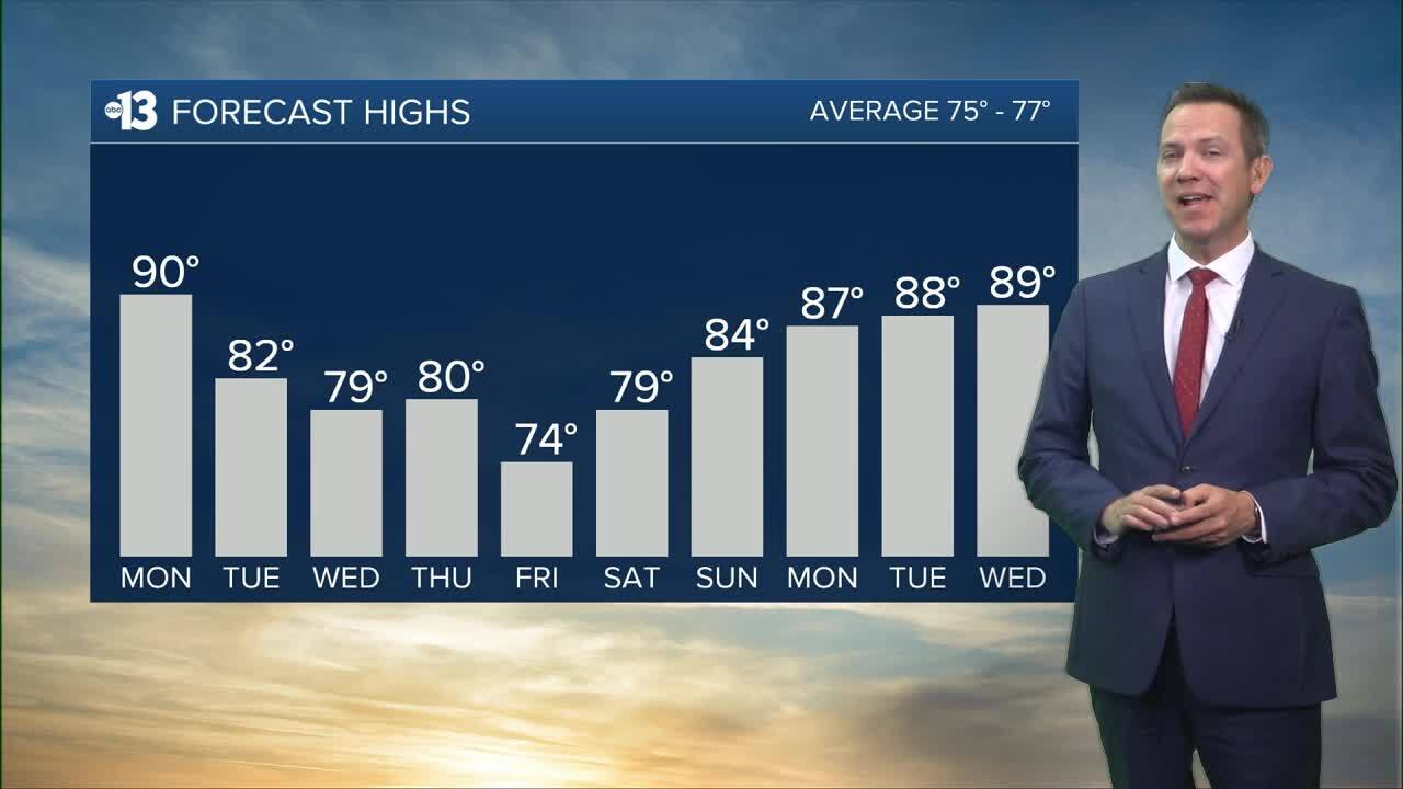 Mid-to-upper 80s are expected next week. Lows at night next week will be in the low 60s.