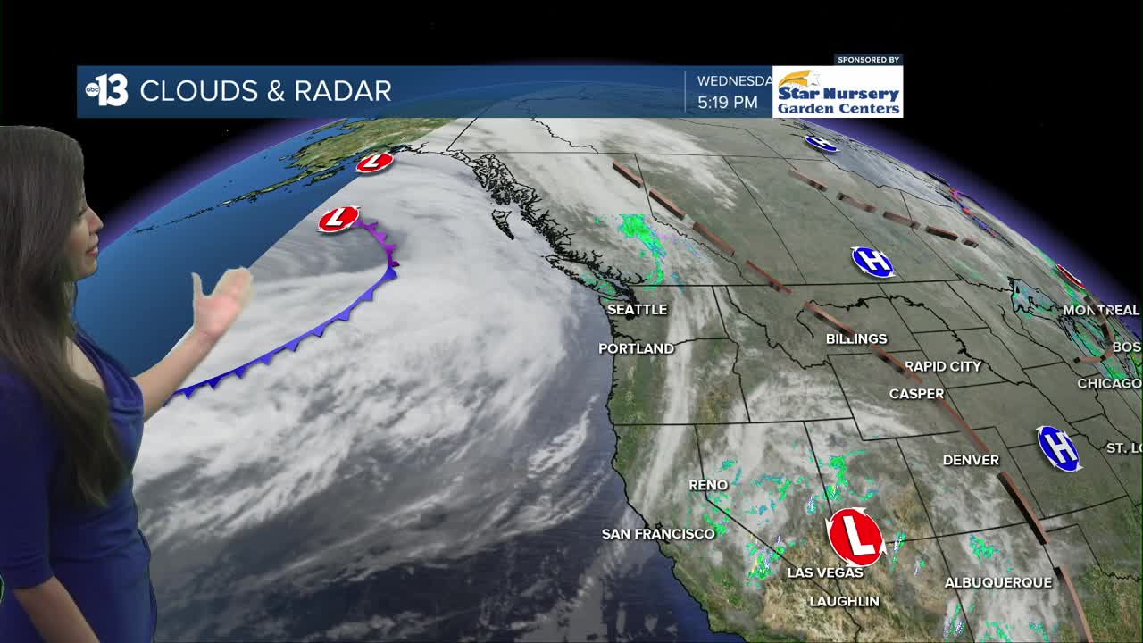 We may see a stray shower late tonight as an area of low pressure remains over the region. More sunshine returns Thursday as the system exits the region. The weekend is dry with more clouds and breezier as a strong system passes through the Pacific Northwest. Expect gusts around 20-25 mph. Highs will hover near 80 degrees through Saturday, then 70s by Sunday. Dry weather continues next week. Overnight lows in the 50s and 60s.