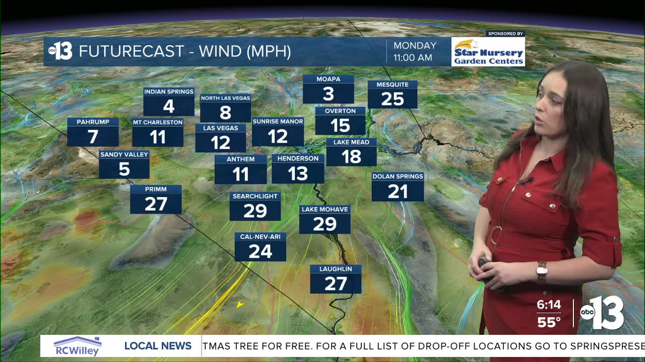 Breezy and sunny conditions continue Monday in Southern Nevada.
