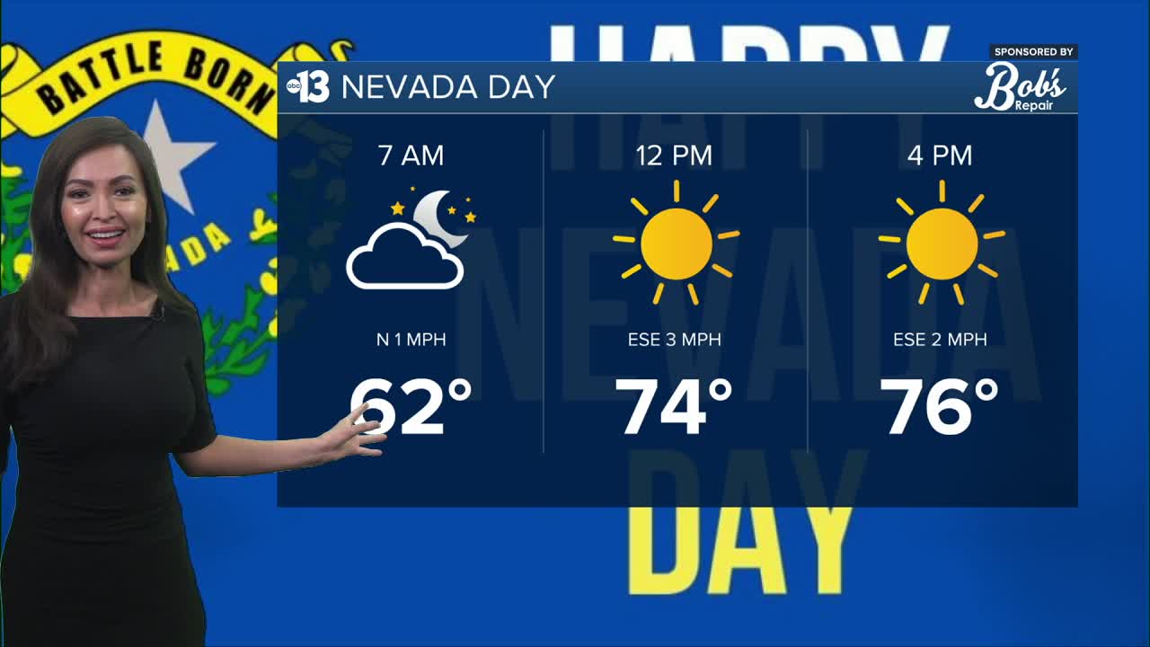 Clear and cool tonight with lows dropping into the 50s. Sunny, mild with lighter winds on Wednesday. High pressure will build over the region and keep conditions sunny and mild the rest of the week. Expect highs in the 70s to low 80s and overnight lows in the 50s and 60s. Pleasant weather for Nevada Day and trick- or- treaters on Halloween night.