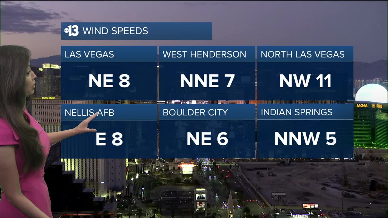 Clear skies with lows in the 40s and 50s. Dry, sunny and milder weather on Friday. Warmer temperatures return this weekend with highs back to average by Sunday. Another area of low pressure will move through the Pacific Northwest early next week. This will give us cooler temps and some gusty winds. No rain expected in Southern Nevada the next 7 days. Overnight lows will drop into the 50s.