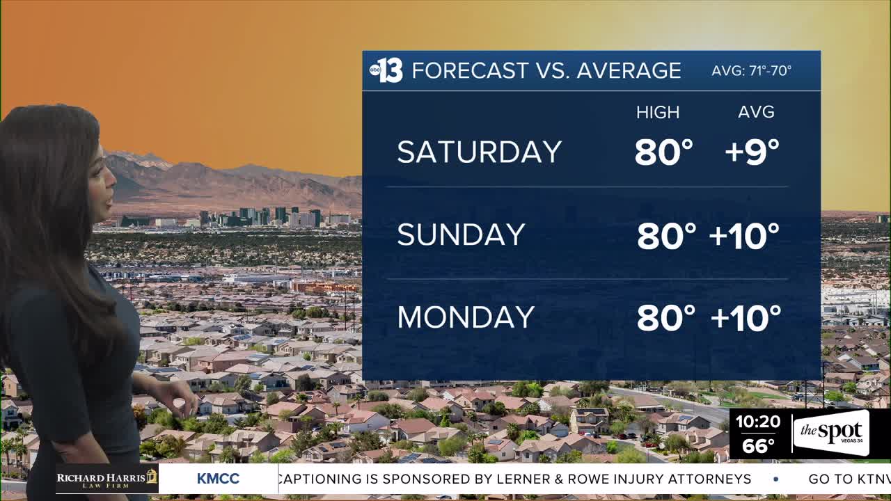 Clear skies with lows in the 50s tonight. Sunny and warm this weekend as high pressure builds in. High temps will reach into the low 80s, which is about 10 degrees above average for this time of year. The dry and warm weather will stay with us through most of next week. We have a slight chance of showers on Friday and much cooler temps. Overnight lows in the 50s the next 7 days.
