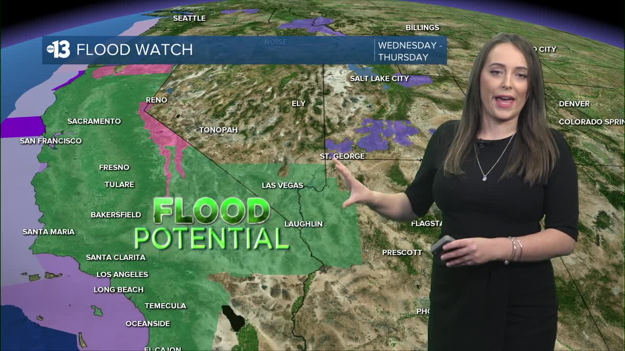 A Flood Watch has been issued for Clark County and Southern Nye County going into effect tomorrow at 4AM. Excessive flooding could cause urban ponding, rising stream waters, and flash flood potential. This alert lasts 24 hours. Remember, never drive into a flooded roadway!