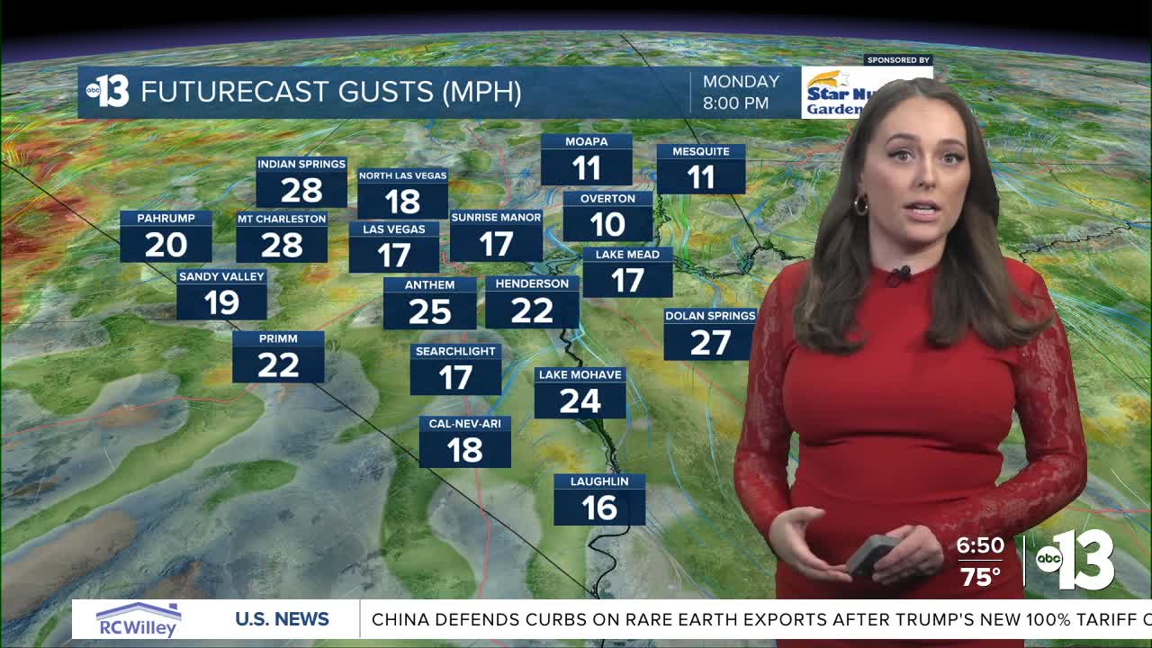 We'll see a significant drop in temperatures due to this system from the low 80s Monday to the low 70s Tuesday in the Las Vegas valley.